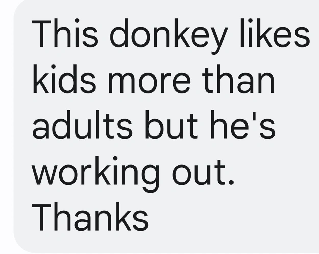 Some donkeys do prefer hirses we try to match the right donkey for its purposel