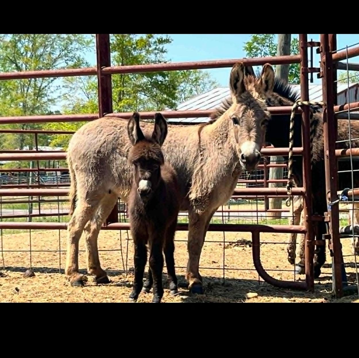 Mini jenny with jaxk baby these donkeys have the best personality you can pick that little baby up and carry him around and the mother is very sweet too $4500