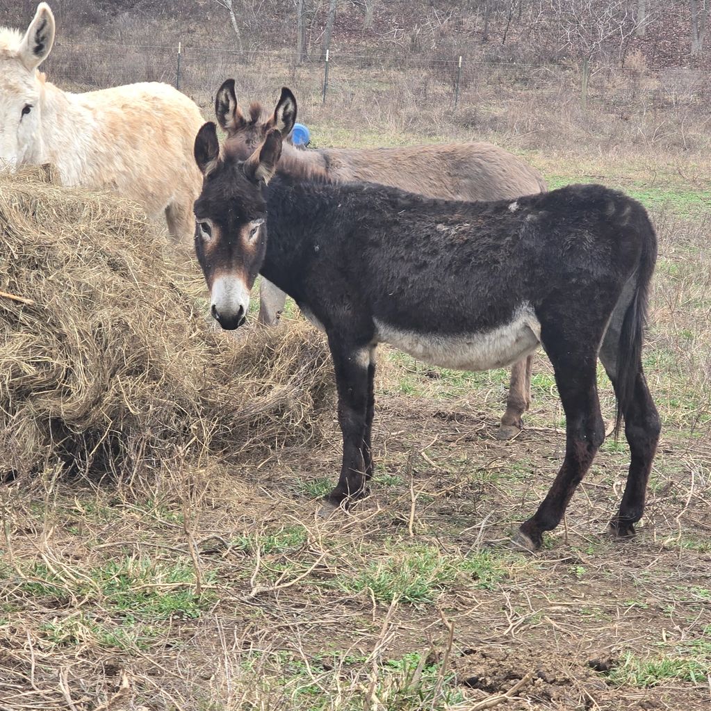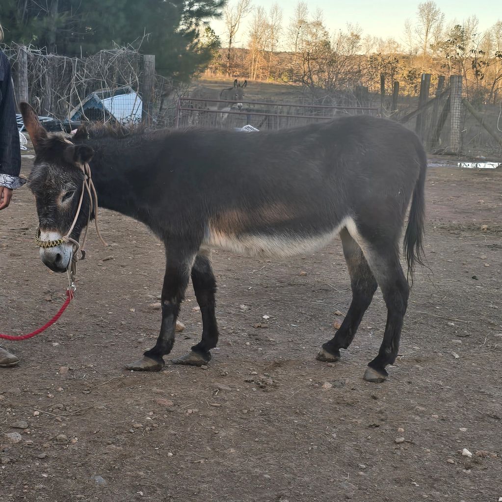 Blind in one eye jack, hes very sweet kids rode him, he is beat up from being a jack. Be a great pet if you can over look he is blind in one eye. His marks will go away. He will be fat slick.pretty black donkey. He is the first to meet you he likes people. 475